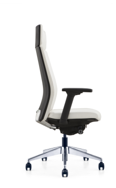基材:優(yōu)質(zhì)西皮或巴西進口頭層黃牛皮飾面,椅背采用鋼制框架,40密度高彈力海綿,配鋁合金四方扶手,配PU扶手面,配原位鎖定或者3段和4段鎖定功能底盤,65#沉口4公分電鍍汽桿,∮330不銹鋼或者鋁合金腳高腳,φ60MM PU輪防震靜音黑色輪。