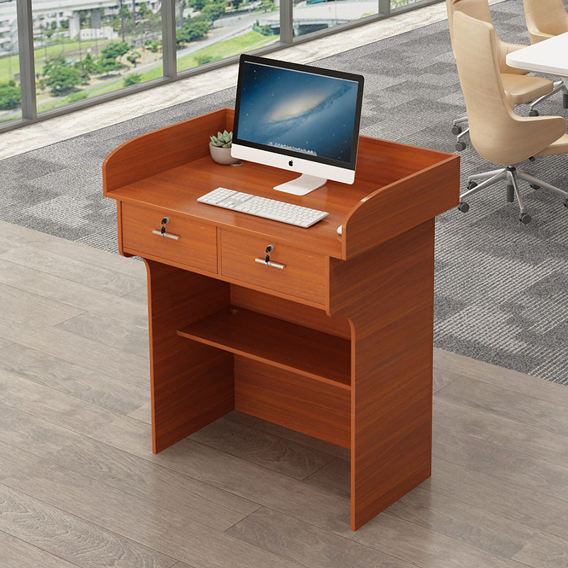多媒體講臺 閱覽桌 迎賓臺多媒體講臺培訓班用教師會議室教室地臺播音主持臺老師講臺桌講桌 淺胡桃色三抽